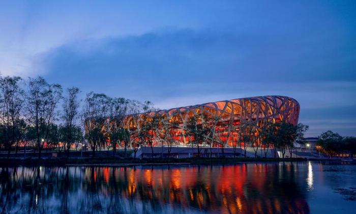 夜景:19:00-21:30燈光秀,水立方外壁呈現動態光影。