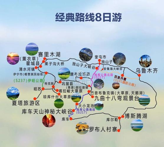 - 賽里木湖:賽里木湖東門進南門出,省30公里重複路。